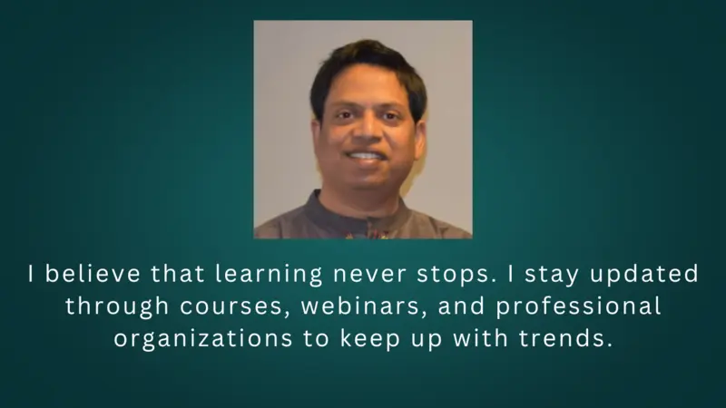“I believe that learning never stops,” Rajesh emphasizes. “The moment you think you know everything is when you stop growing. I stay updated through courses, webinars, and professional organizations to keep up with trends.”